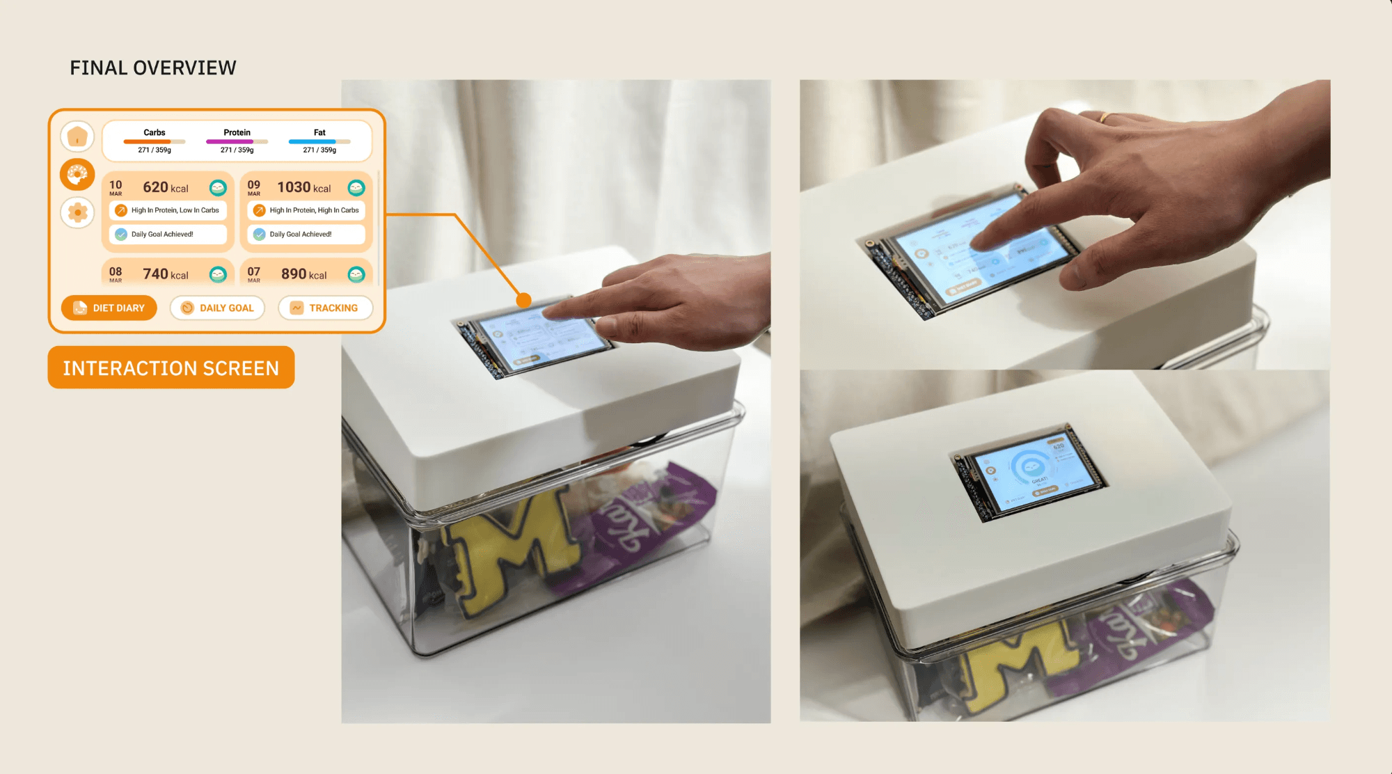 Our team created a prototype that not only addresses the gaps in existing habit-tracking tools but also introduces a playful, supportive experience that users want to engage with. Smart Snack Box was recognized with Most Innovative Product award, affirming that our research, interaction design, and technology that delivers a compelling solution to a real user need.