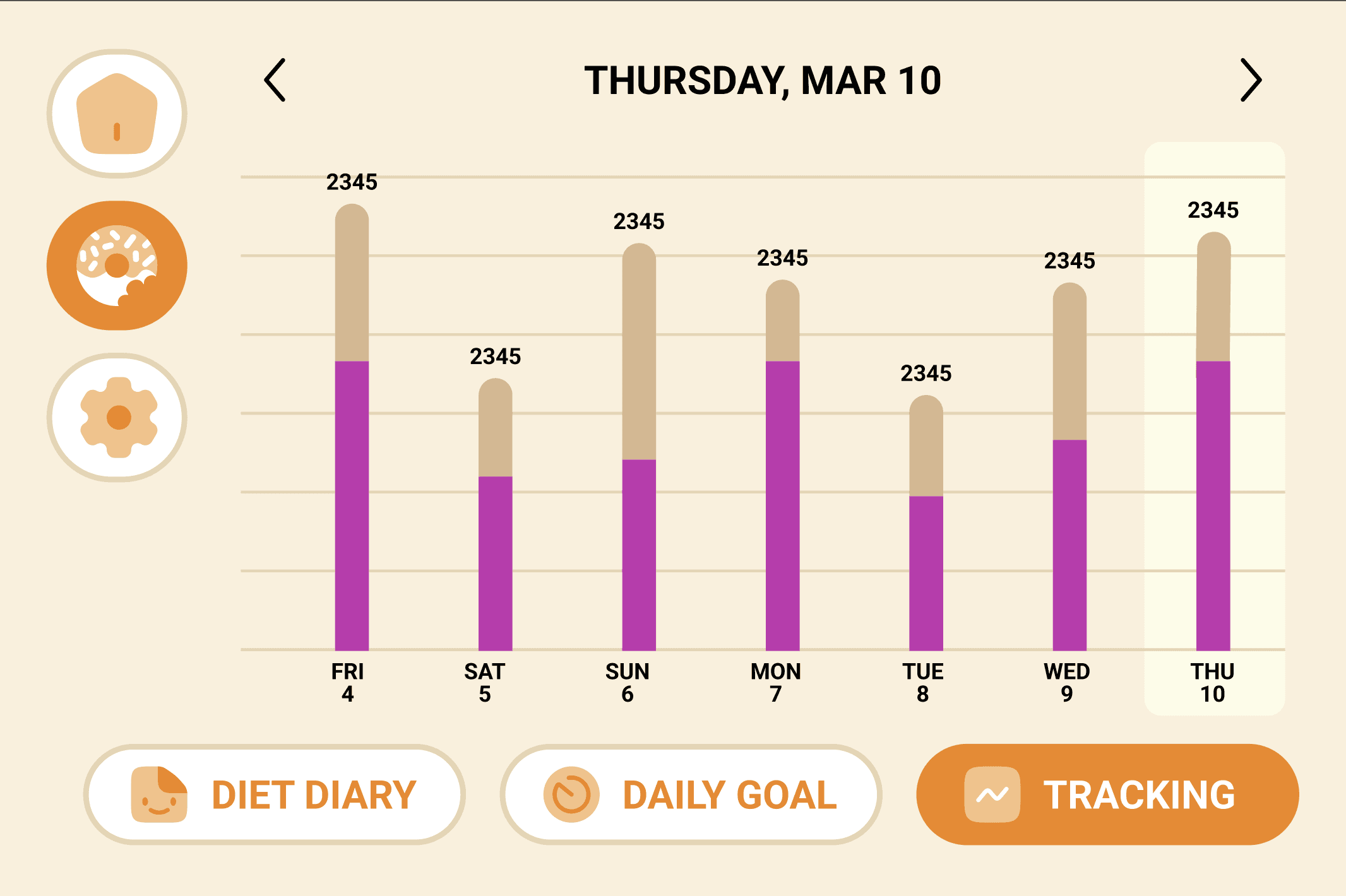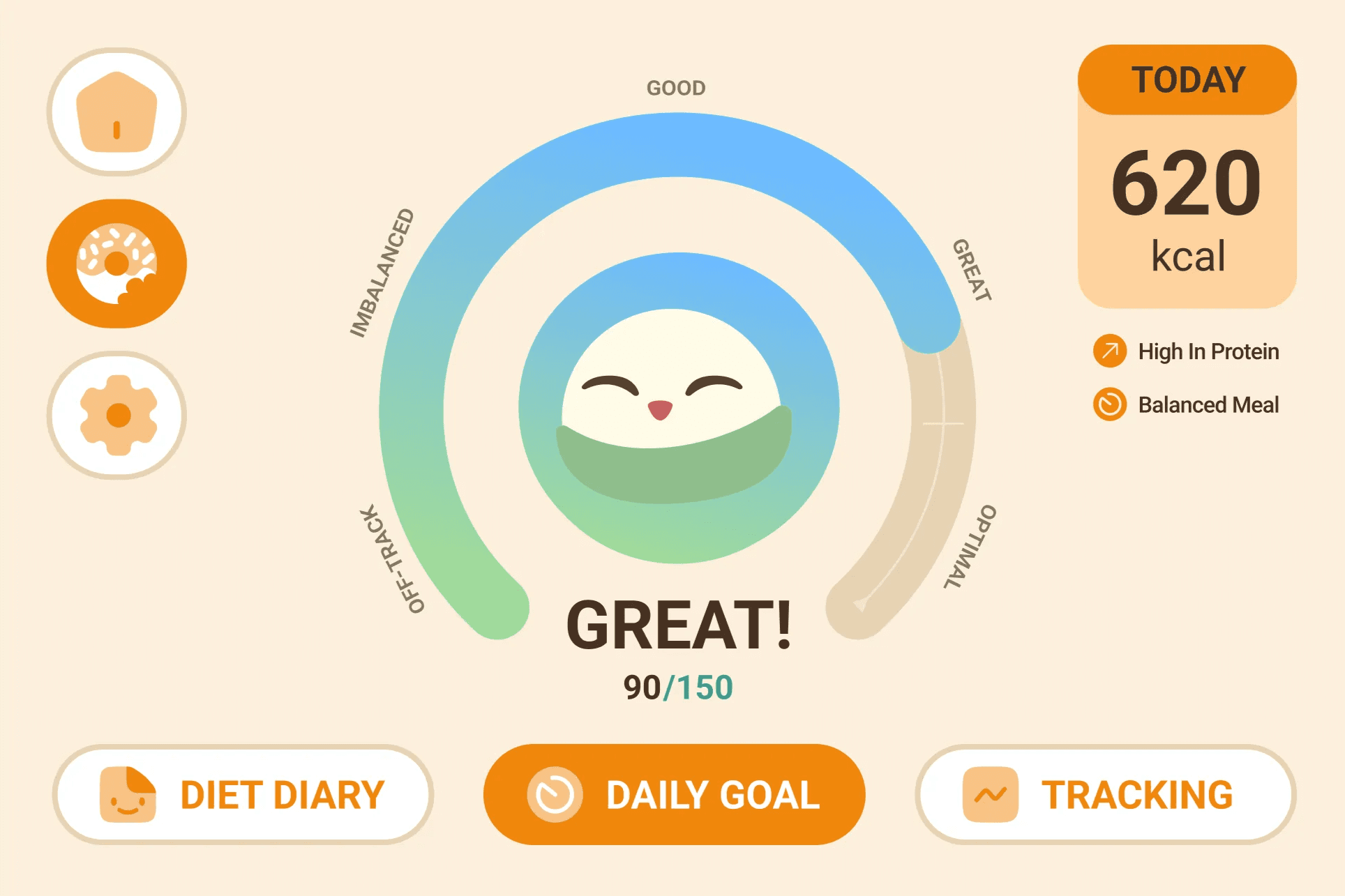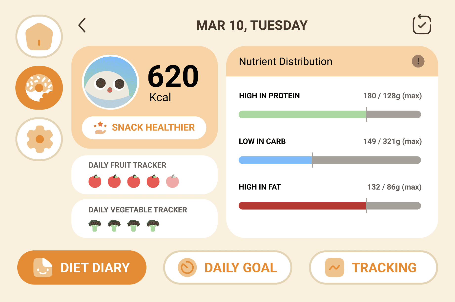 Daily progress dashboard, which visualizes nutrition goals and personal achievements