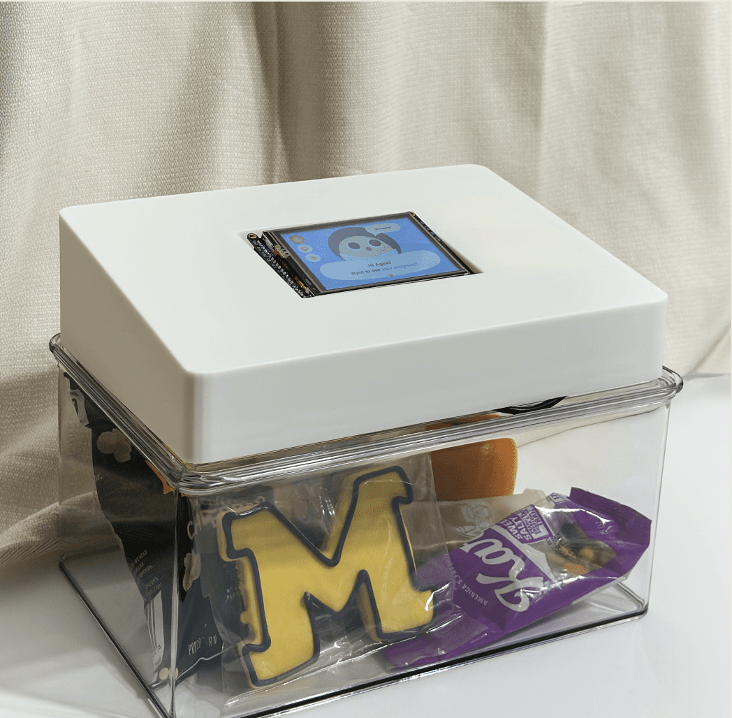 Our product shows promise but is limited by simulated sensing, reliance on self-reported personalization, and hardware constraints that prevented full validation of weight and visual tracking. I would like to expand testing to more target users, supporting non-packaged snacks with low-effort input (voice, camera assistance), exploring mobile or voice companion options, and working with developers to test real emotion tracking and more seamless passive feedback.
